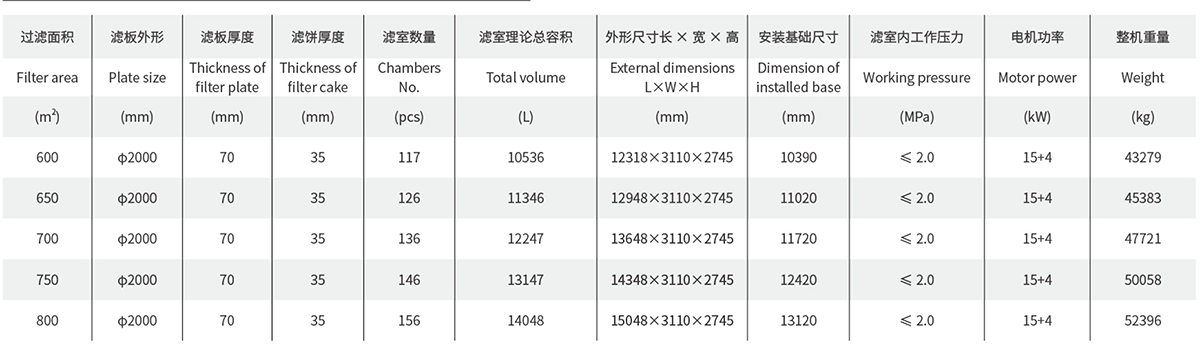 產品描述:2000型高壓壓濾機是集機、電、液于一體的固液分離機械設備,它主要由五大部分組成:機架部分、自動拉板部分、過濾部分、液壓部分和電器控制部分。可根據需求增加接液盤、翻板、儲泥斗、水洗系統、濾布曲張架、氣卸料等。其結構較簡單,操作容易,運行穩定,保養方便;過濾面積選擇范圍靈活,占地少;對物料適應性強 效率高,含水率低,適用于各行各業
