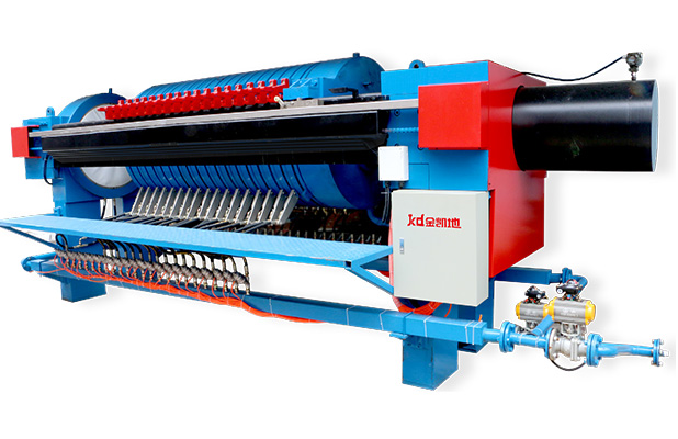 ②、高壓低能耗 : 整機機架、濾板均采用高強度優質鋼,經特別防腐處理,經過數控加工后組成一體式高密封性能的濾室和機架 , 足夠滿足 100kg/cm2 以上高壓壓榨要求 ; 系統 設計采用低壓進料、高壓壓榨的階梯式壓榨,階段式循序漸進的提升壓榨壓力,克服了濾講自身因含水率降低帶來的過濾比阻,縮短了過濾周期降低能耗,提高了工作效率。