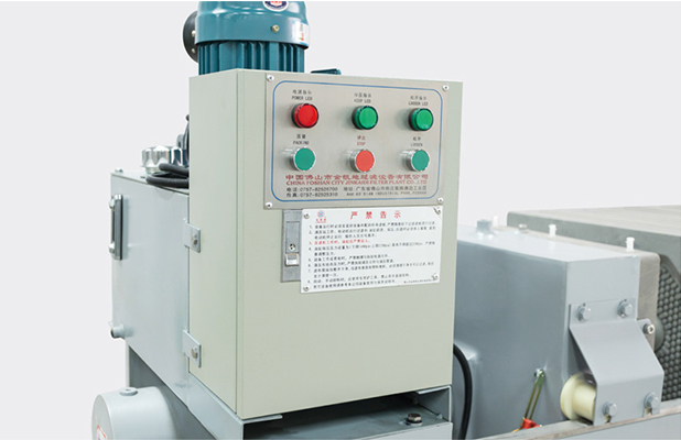①采用液壓裝置作為壓緊,松開濾板的動力裝置,配自動拉板和接液翻版;
