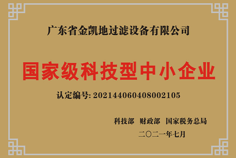 根據《科技型中小企業評價辦法》和《科技型中小企業評價工作指引(試行)》等有關規定,經評價機構及登記機關審核,廣東省金凱地過濾設備有限公司再次成功進入國家級科技型中小企業庫(入庫登記編號:202144060408002105)。