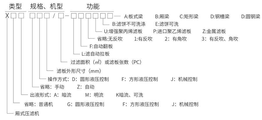 金凱地壓濾機設備型號說明,如下圖