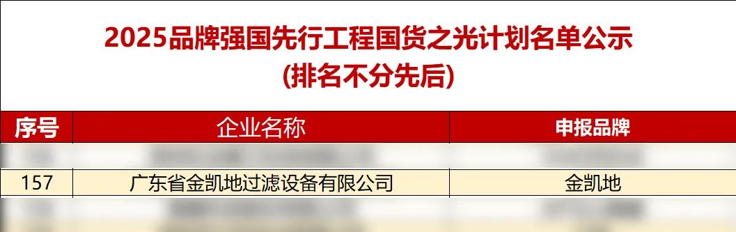 2025年1月,在“品牌強(qiáng)國(guó)先行工程”的嚴(yán)苛篩選中,廣東省金凱地過(guò)濾設(shè)備有限公司從申報(bào)企業(yè)中脫穎而出,榮登“國(guó)貨之光計(jì)劃”權(quán)威名單!這一由國(guó)家工業(yè)和信息化部指導(dǎo)、《中國(guó)工業(yè)報(bào)》聯(lián)合權(quán)威機(jī)構(gòu)評(píng)定的榮譽(yù),僅授予200家代表新質(zhì)生產(chǎn)力與高質(zhì)量發(fā)展的民族品牌。金凱地憑借技術(shù)硬實(shí)力與行業(yè)影響力成功入選,彰顯中國(guó)高端裝備制造的全球競(jìng)爭(zhēng)力。